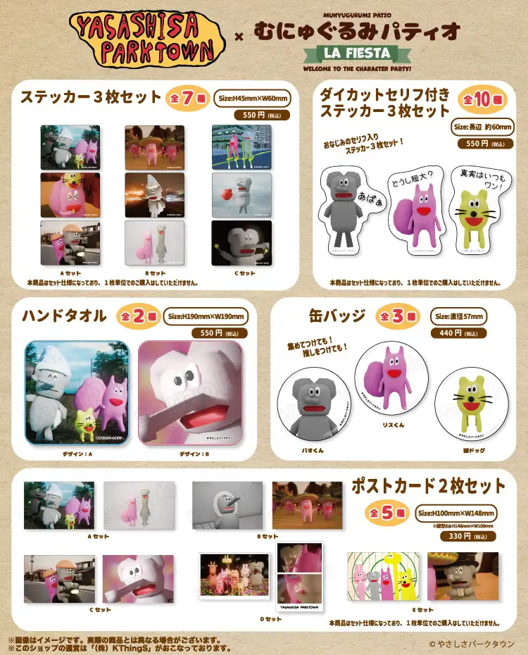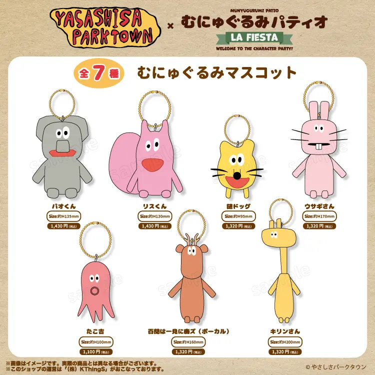 さまざまなキャラクターグッズを企画、販売している株式会社KThingSが運営するキャラクターグッズショップ「むにゅぐるみパティオ」は、「やさしさパークタウン」商品を7月5日(土)に西武渋谷 A館2階 ラ・フェスタ内にて販売を開始いたします。