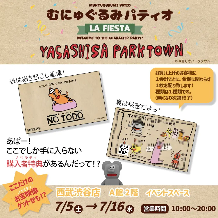 『やさしさパークタウン』が 7月5日(土)~むにゅぐるみパティオ西武渋谷A館2階 ラ・フェスタ内にて販売が決定!!